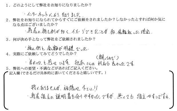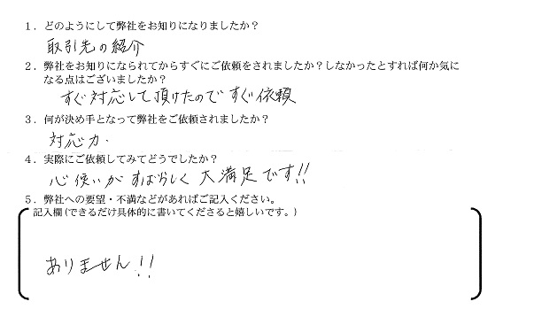 お客様より「不満なし」との嬉しいお言葉を頂きました。